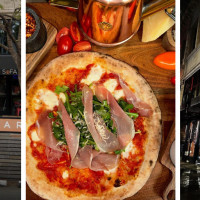 Tomato sauce, olive oil, mozzarella cheese, proscuitto, arugula, parmesan